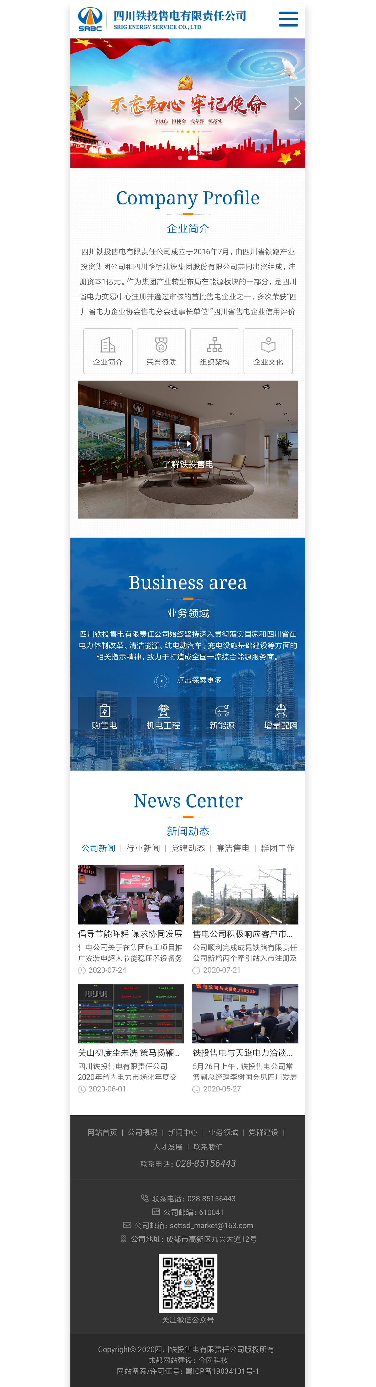 四川铁投售电有限责任公司成立于2016年7月,由四川省铁路产业投资集团有限责任公司和四川路桥建设集团股份有限公司共同出资组成,注册资本金1亿元。作为集团在能源板块产业转型布局的一部分, 我公司始终坚持深入贯彻落实国家和四川省在电力体制改革、清洁能源、纯电动汽车、充电设施基础建设等方面的相关指示精神,致力于打造西南地区一流购售电服务商、配电网建设运营商及新能源服务商。