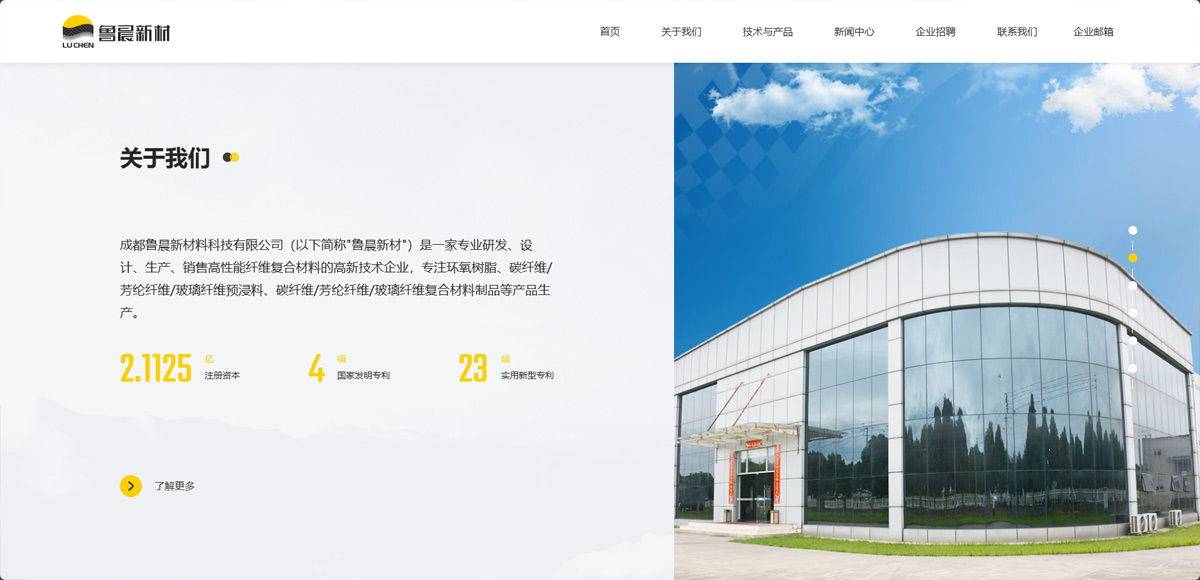 成都鲁晨新材料科技有限公司是一家专业研发、设计、生产、销售高性能纤维复合材料的高新技术企业,专注环氧树脂、碳纤维/芳纶纤维/玻璃纤维预浸料、碳纤维/芳纶纤维/玻璃纤维复合材料制品等产品生产。