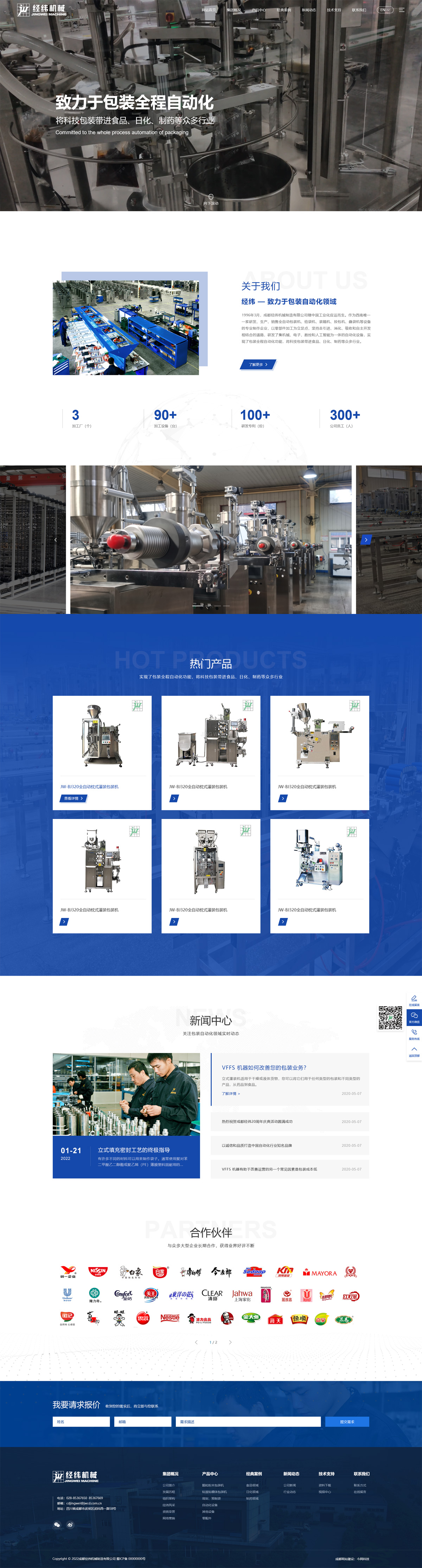 1996年3月,成都经纬机械制造有限公司随中国工业化应运而生。作为西南唯一一家研发、生产、销售全自动包装机、给袋机、装箱机、投包机、叠袋机等设备的专业制作企业