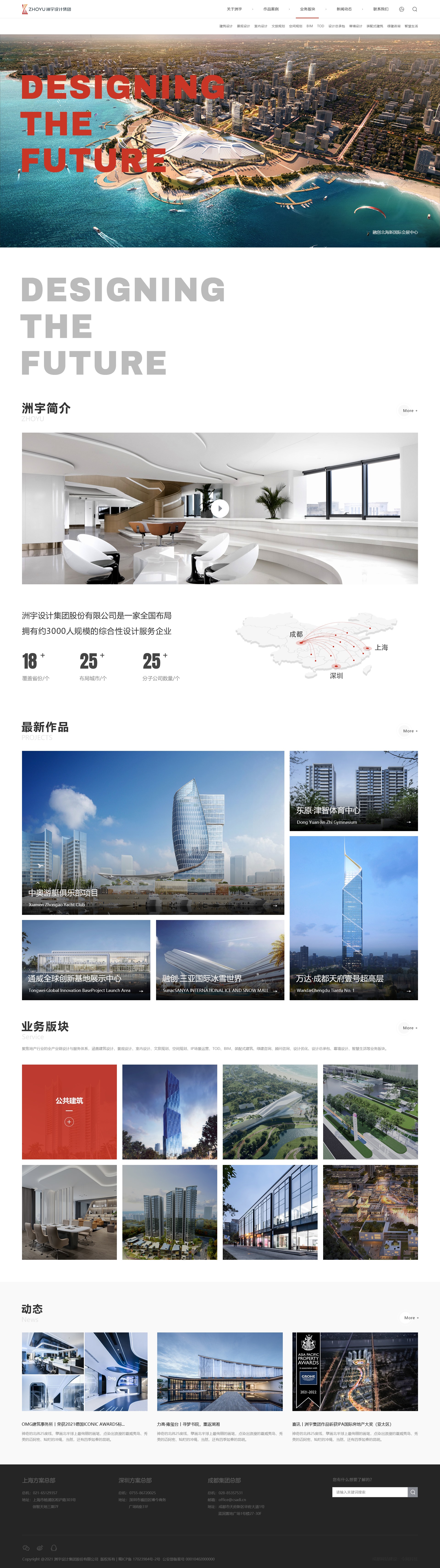 公司形成上海、深圳、成都三总部的发展格局,并在昆明、南宁、贵阳、重庆、西安、长沙、武汉、郑州、厦门、广州、杭州、合肥、南京、济南、沈阳、兰州等城市设有分子公司。洲宇聚焦建筑行业的全产业链设计服务体系,涵盖建筑设计、规划设计、景观设计、室内设计、文旅规划、空间规划、IP场景运营、TOD、BIM、装配式建筑、绿建咨询、顾问咨询、设计优化、设计总承包、幕墙设计、智慧生活等业务版块,以“让建筑更智趣,让生活更美好为使命,推动设计革新,为政府和企业等客户提供全面而专业的综合解决方案与全程卓越的服务体验。