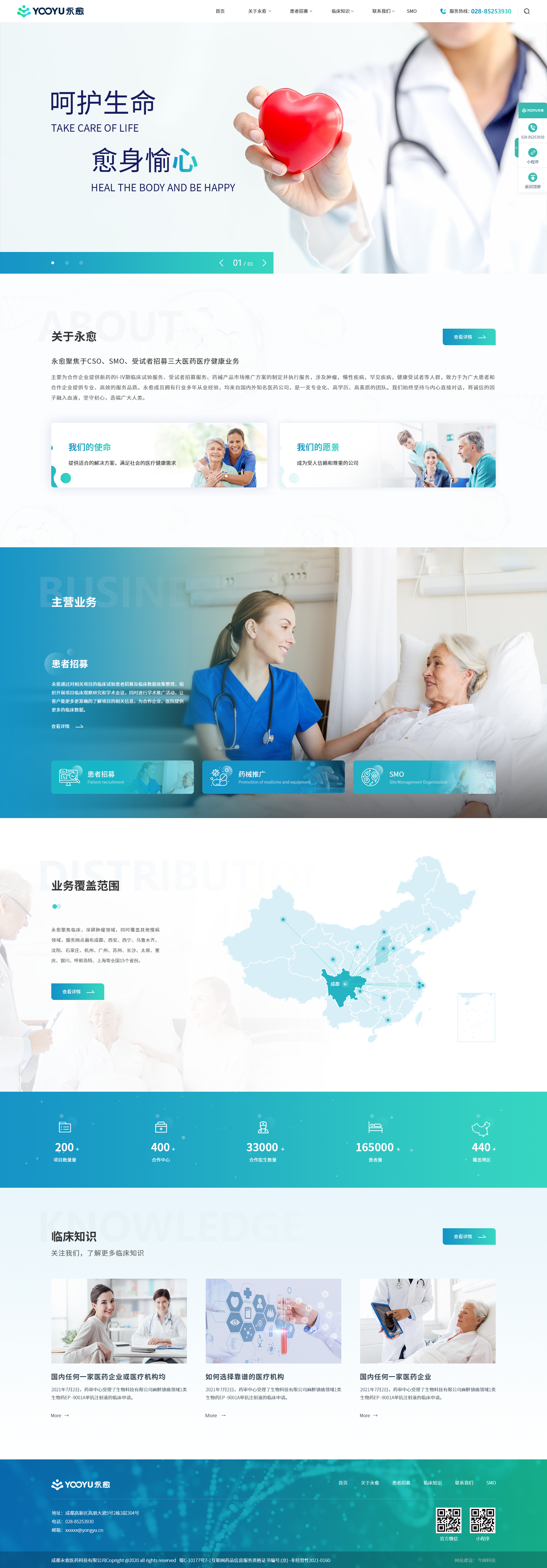 成都永愈医药科技有限公司(以下简称“永愈”)成立于2017年12月,专注耕耘医疗大健康领域,提供以肿瘤领域为主、包含其它慢病领域的市场定位、患者招募、数据管理、市场准入、学术活动及专业推广的医疗科技类公司。永愈通过对相关产品临床试验患者招募及相关临床数据收集整理,组织开展相关的产品临床观察研究和学术会议,同时进行学术推广活动,让客户能更多更准确的了解产品的相关信息,为合作企业提供更多的市场数据。