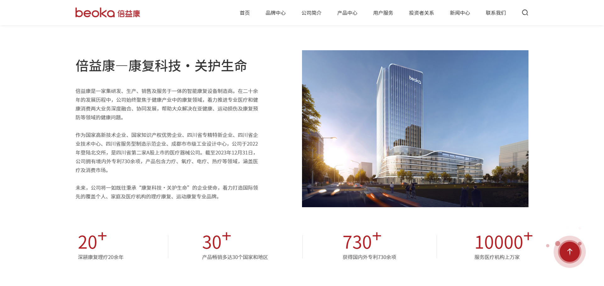 倍益康是一家集研发、生产、销售及服务于一体的智能康复设备制造商。在二十余年的发展历程中,公司始终聚焦于健康产业中的康复领域,着力推进专业医疗和健康消费两大业务深度融合、协同发展,帮助大众解决在亚健康、运动损伤及康复预防等领域的健康问题。